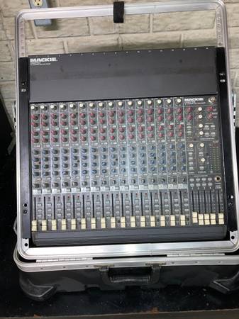 Mackie board with case. Channel 7 has isn't working right now. May need some electrical cleaner. Otherwise everything else checks out.